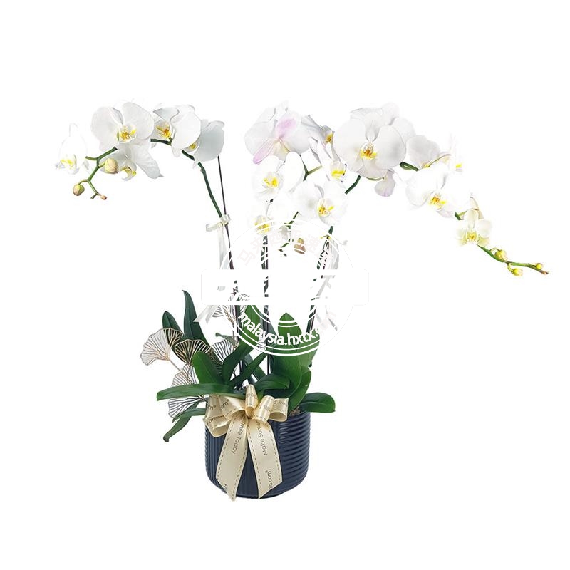 描述: 3株白色蝴蝶兰、花盆装(宽 30cm,高 50 cm)。