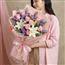 10支粉玫瑰,3支单茎百合,勿忘我和尤加利组成、精美包装.